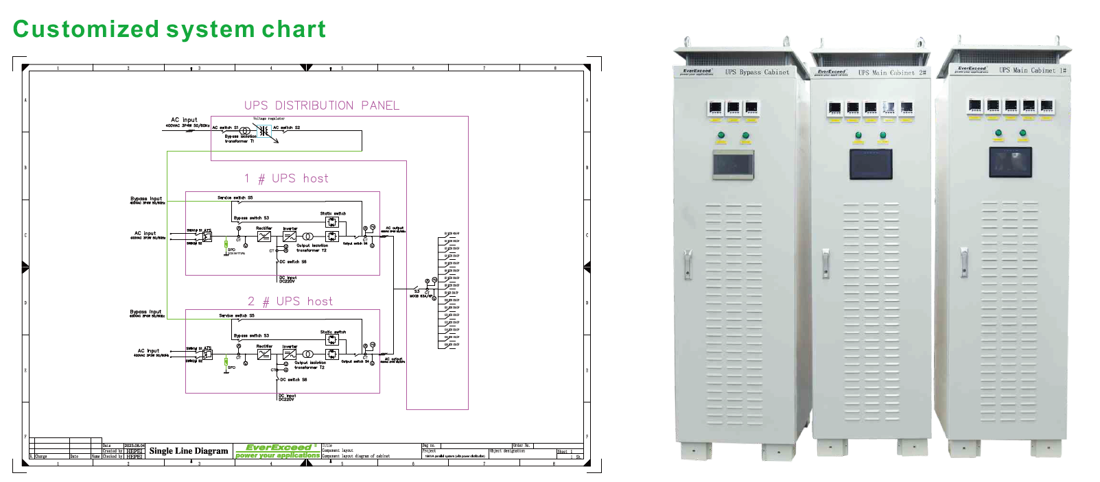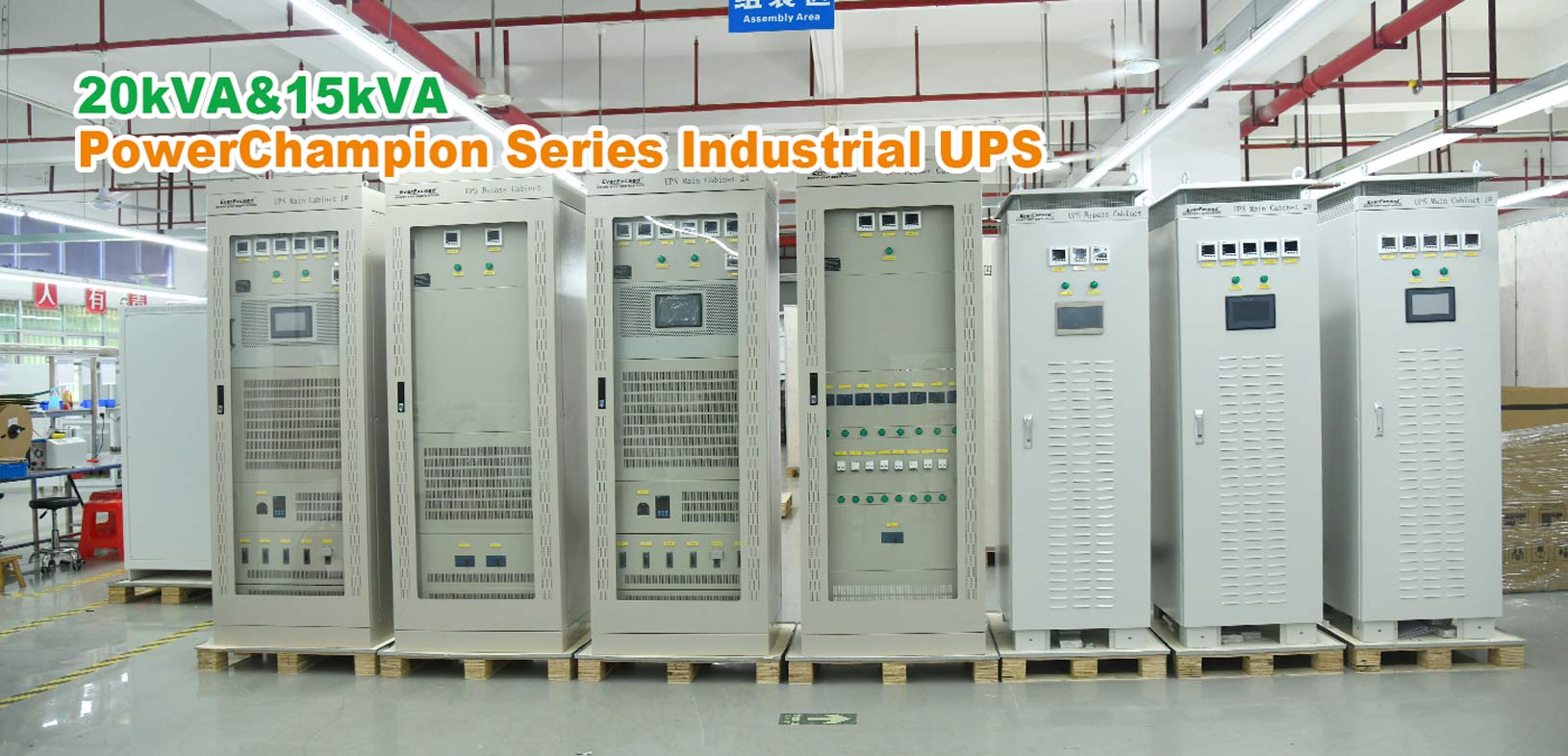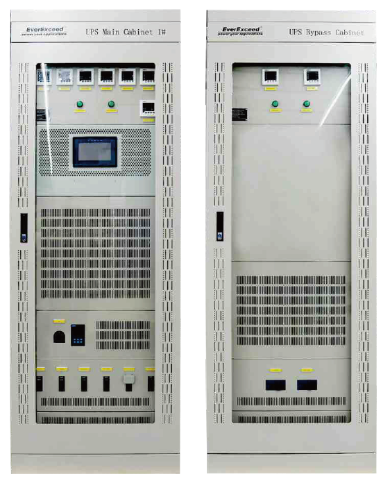 UPS industrial personalizada de 15 kVA con clase de protección lP42. UPS industrial de 220 kVA con clase de protección lP41; también se puede personalizar con otros niveles de protección.