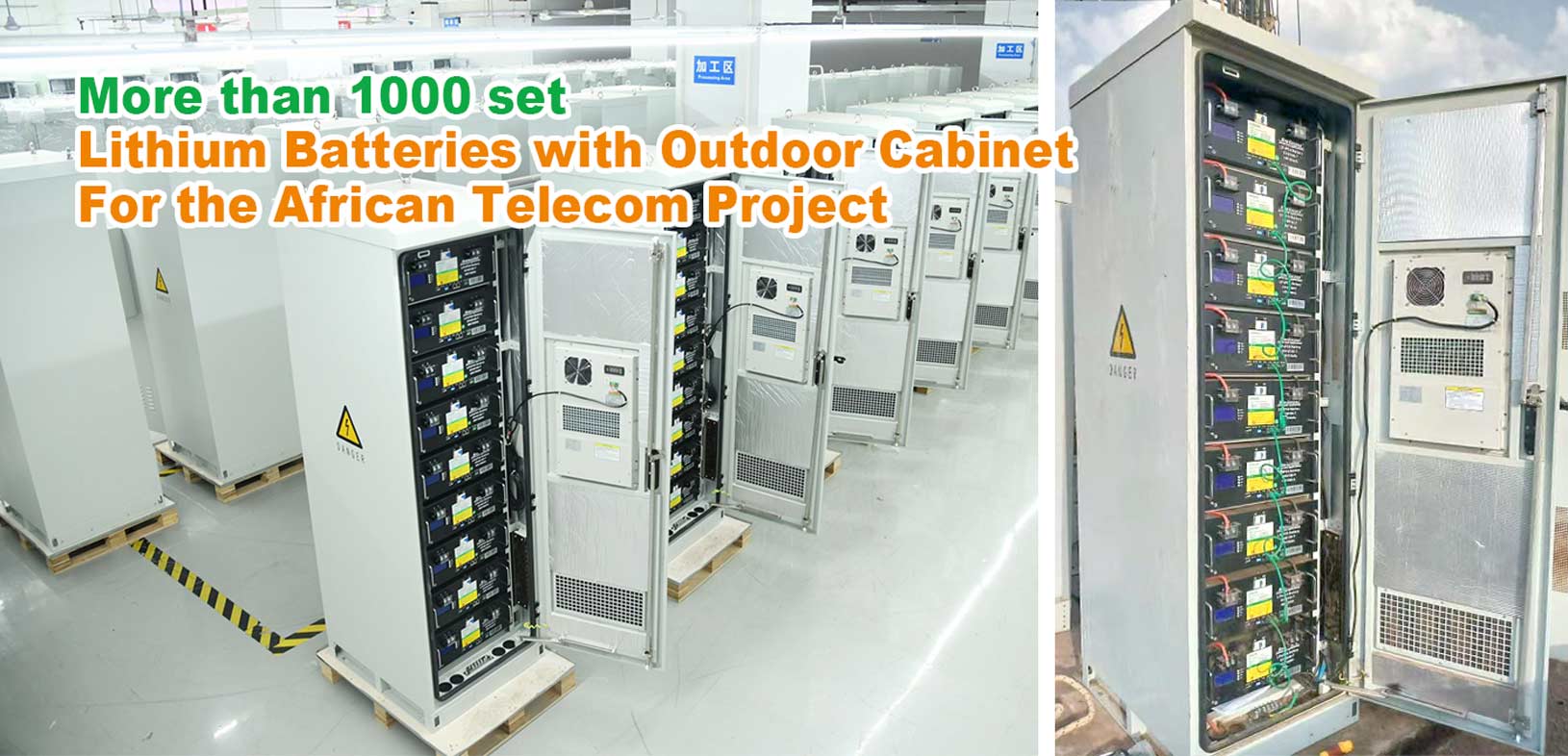 Aquí presentamos nuestras baterías LiFePO4 de 48 V y 900 Ah con gabinete exterior personalizado para el proyecto de telecomunicaciones africano. Estos sistemas solares para telecomunicaciones se integraron con un aire acondicionado de CC de 600 W y baterías de litio de 48 V y 100 Ah, ofreciendo una solución mucho más segura, inteligente y sencilla. Pueden ayudarle a resolver los problemas de energía en su estación base (BTS), centro de datos de internet, gabinete de energía exterior integrado, instalaciones de telecomunicaciones de red, etc.
